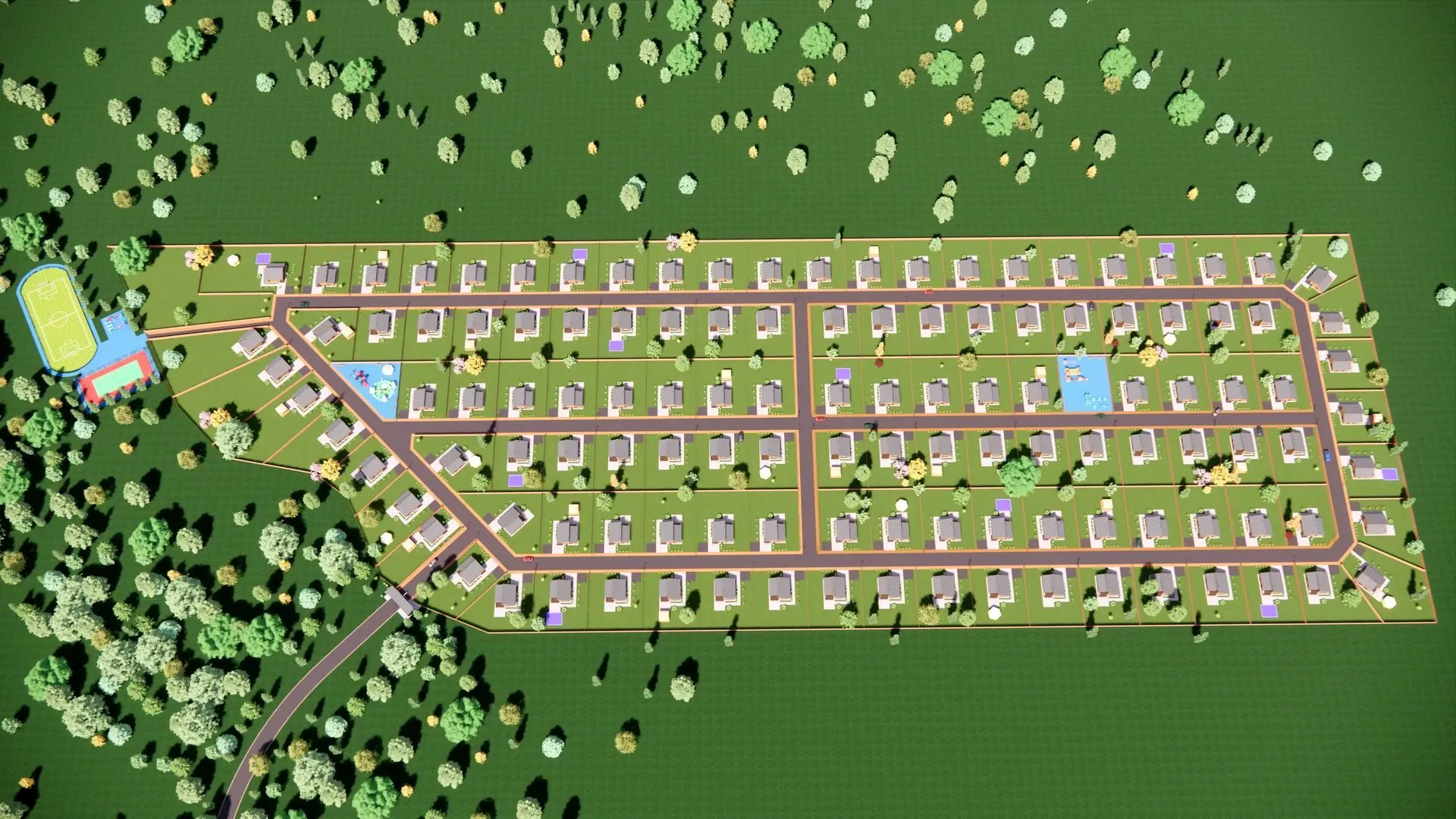 На плане представлены участки ровной прямоугольной формы, широкие проезды, зоны инженерных коммуникаций и продуманная структура кварталов. Такая организация территории позволяет начать строительство сразу после покупки участка и получить готовый дом под ключ уже через 2–3 месяца.